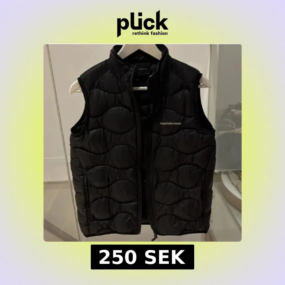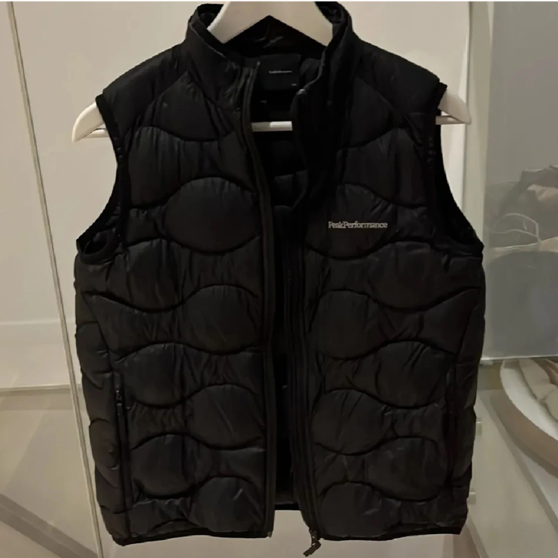 Säljer en svart dunväst från Peak Performance, modell JR Helium Vest. Perfekt inför kyligare sommardagar. Västen har ett litet hål på vänster sidan vilket är lagat.