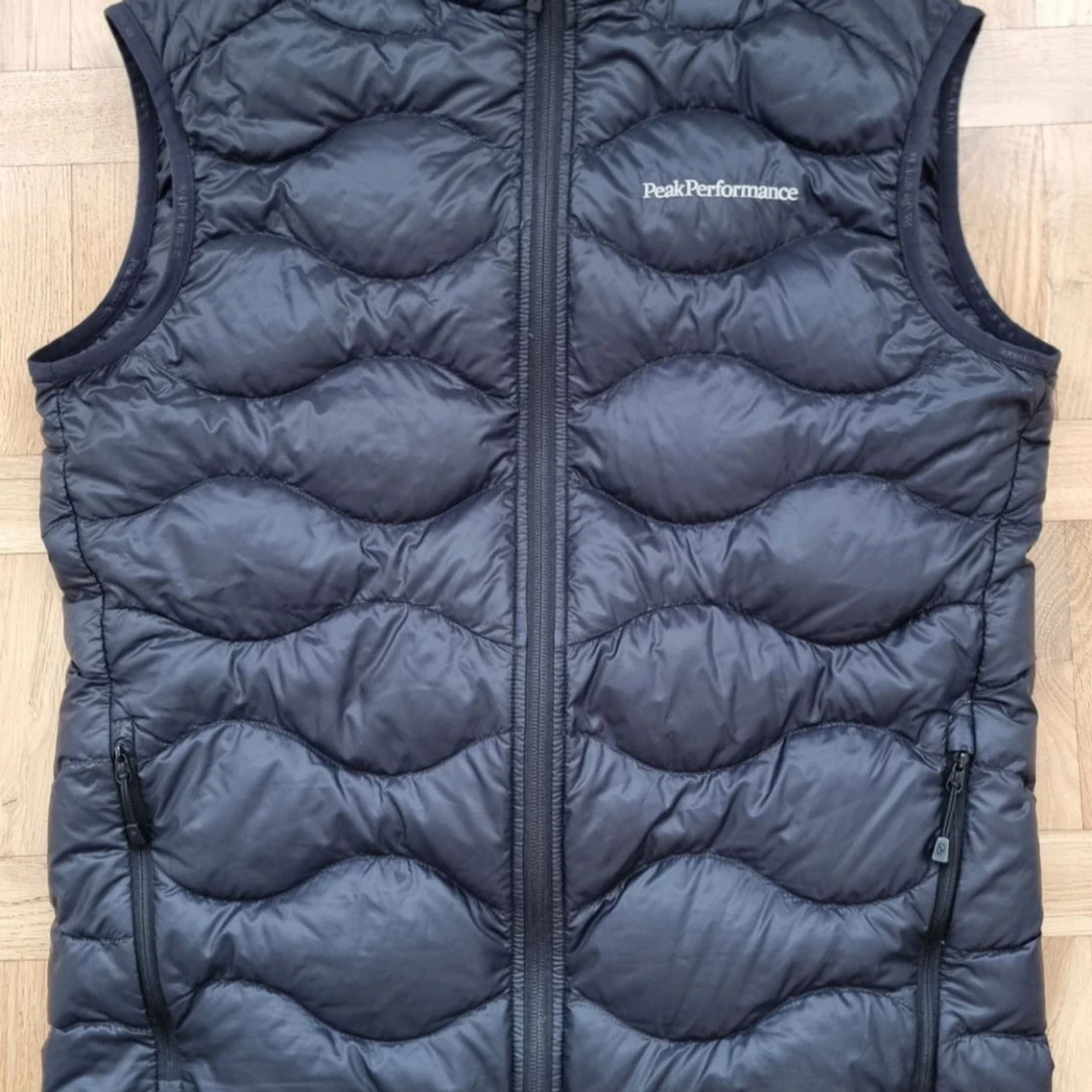 Snygg svart dunväst från Peak Performance modell HELIUM andvänd fåtal gånger då jag inte gillade modellen med quiltad design och dragkedja framtill. Perfekt för kyliga dagar och ger en sportig look. Västen har praktiska fickor med dragkedja.