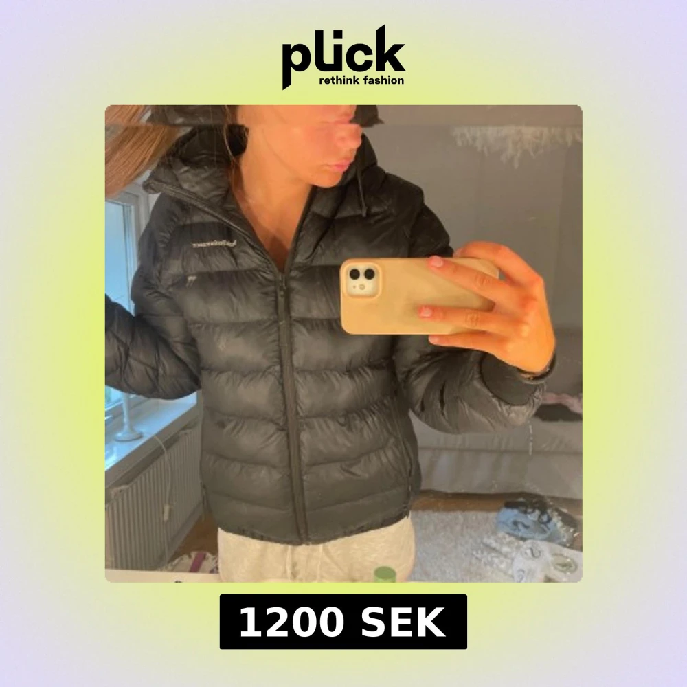 Säljer en svart dunjacka från Peak Performance med huva och dragkedja framtill. Jackan har en puffad look, långärmade ärmar och diskret logga på bröstet. Perfekt för kyliga dagar och enkel att matcha med olika outfits.