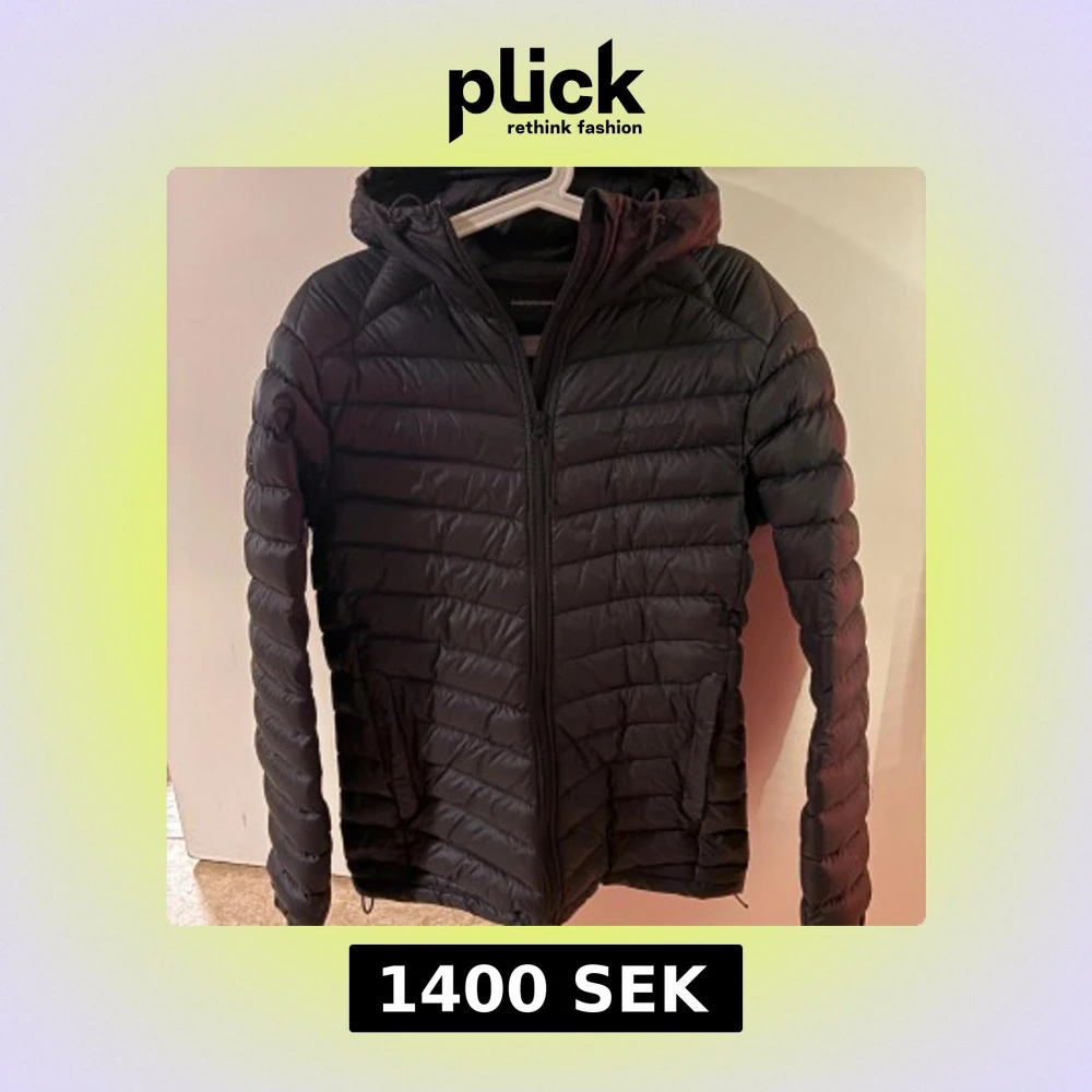 Svart jacka från Peak Performance i storlek S. Jackan har huva, dragkedja framtill och två sidofickor. Snyggt quiltad design med diskret broderad logga på bröstet. Perfekt för kyliga dagar och enkel att matcha med allt.Ett litet hål vid ärmen som är enkel att sy eller lägga en patch på.