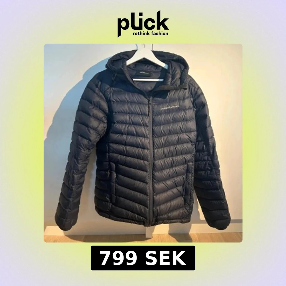 Snygg Mörkblå dunjacka från Peak Performance med huva och dragkedja framtill. Jackan har quiltad design och är lätt vadderad, perfekt för kyliga dagar. Klassisk passform och diskret logga på bröstet. Enkelt stilren och passar till det mesta.