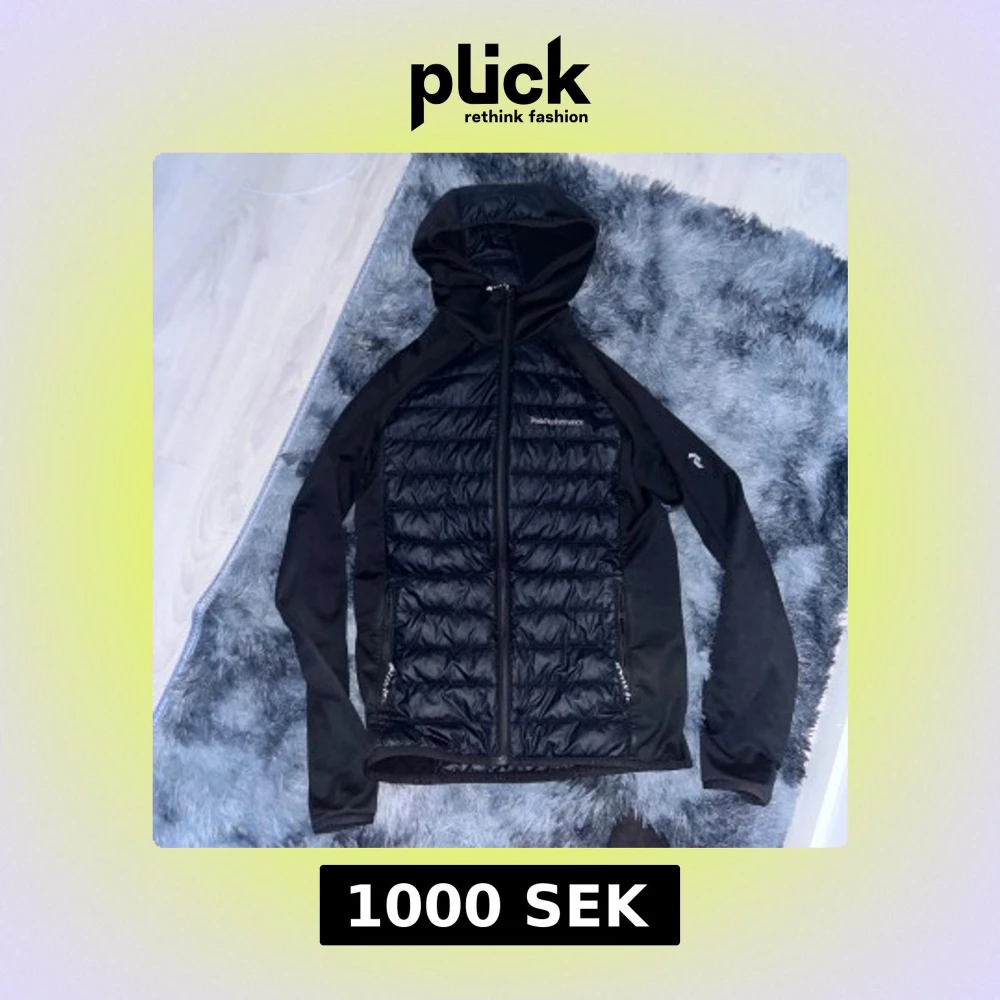 Svart pufferjacka från Peak Performance med huva och dragkedja. Jackan har quiltade partier framtill och på huvan, samt släta ärmar. Perfekt för kyliga dagar och har en sportig look.