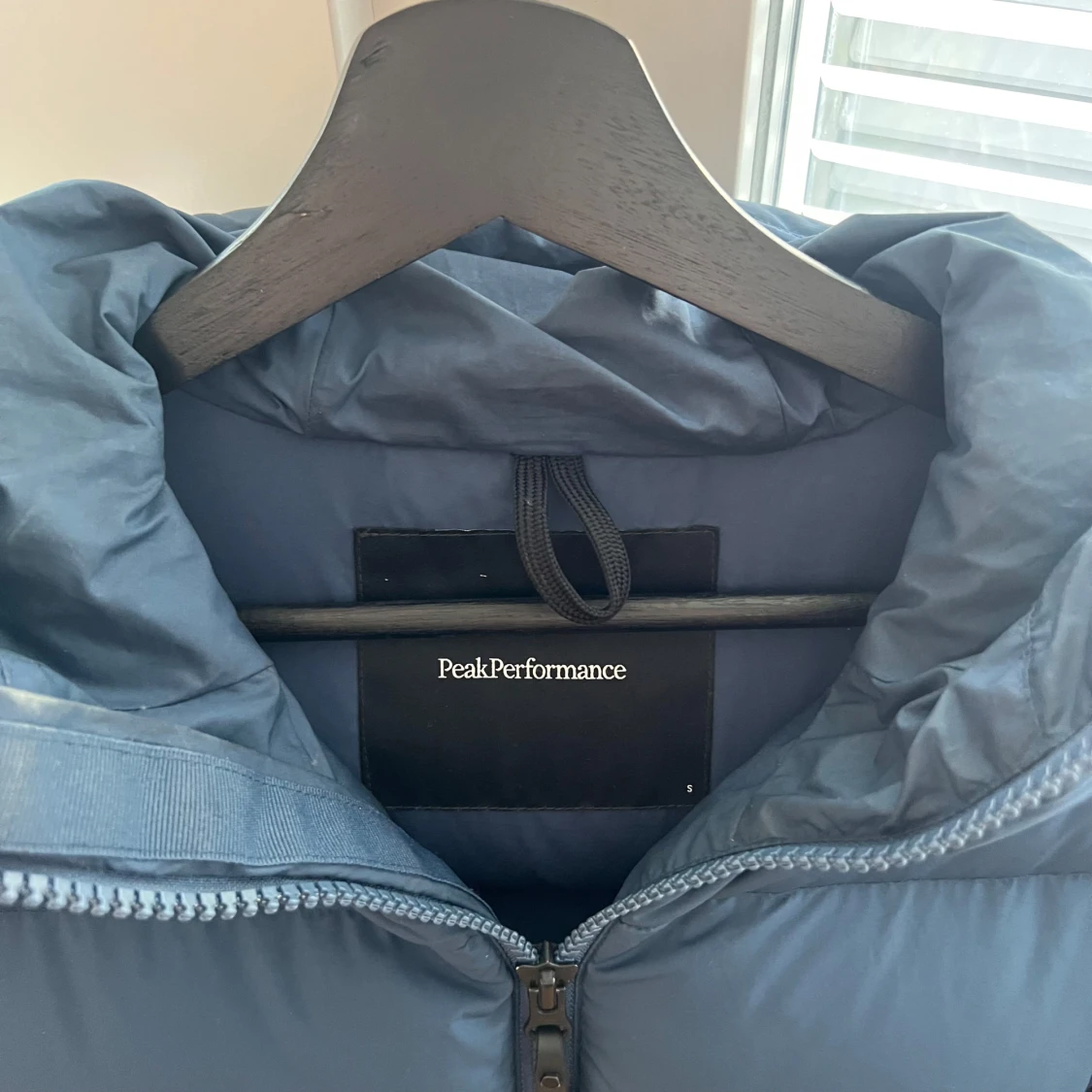 En snygg och varm jacka med huva från Peak Performance i nyskick. Jackan har en dragkedja framtill och två fickor på sidorna. Storlek S, passar även mindre M. Köptes för 4099kr, använd en gång sedan dess. Motsvarar dagens model ”Rivel Jacket”.