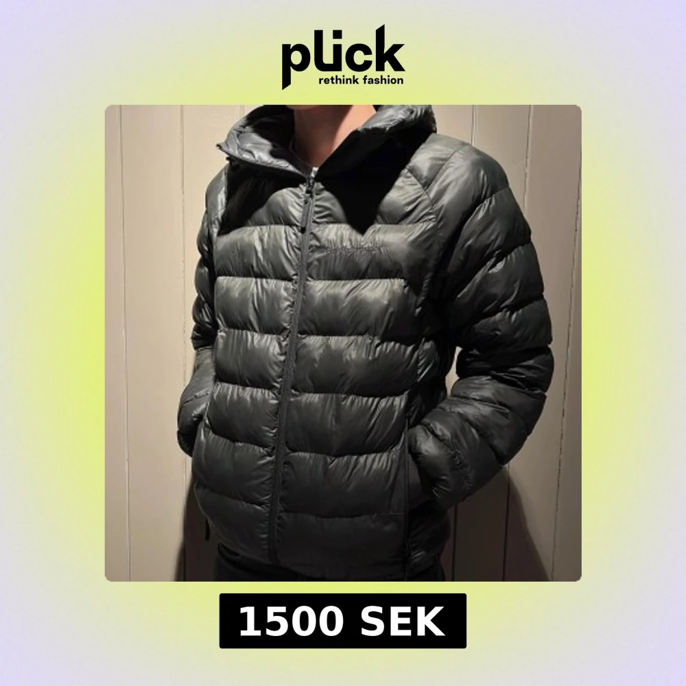 Säljer en grön pufferjacka från Peak Performance med huva och dragkedja framtill. Jackan är quiltad med breda kanaler och har en snygg, sportig look. Perfekt för kalla dagar och enkel att matcha med olika outfits.