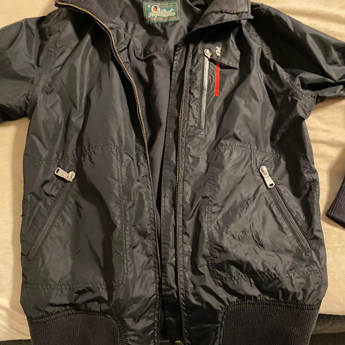 Svart vindjacka från Peak Performance med dragkedja framtill och tre fickor med dragkedja. Jackan har ribbade muddar vid ärmslut och nederkant, samt diskret logga på bröstet. Perfekt för blåsiga dagar och enkel att matcha med olika outfits.