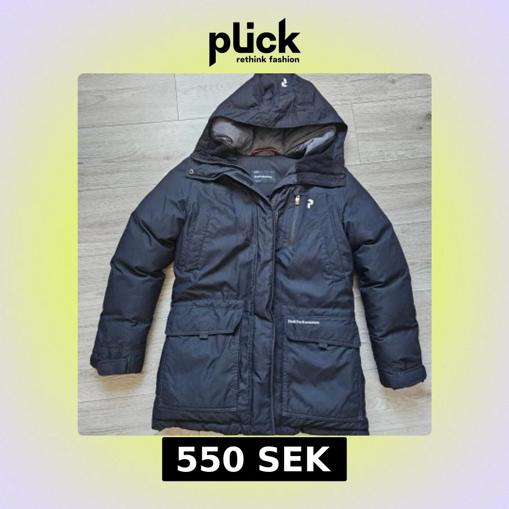 Svart parkajacka från Peak Performance med huva, flera fickor och dragkedja framtill. Jackan har en stilren look och är perfekt för kalla dagar. Materialet är slitstarkt och jackan har en normal passform. Snygg logga på bröstet och fickan.