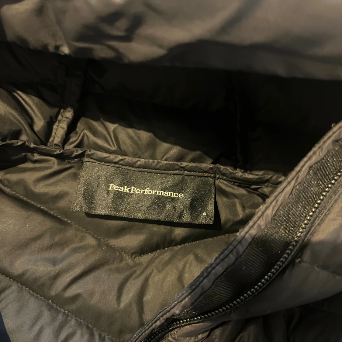 Svart pufferjacka från Peak Performance med huva och dragkedja framtill. Jackan har quiltad design och logga broderad på bröstet. Perfekt för kalla dagar och har en stilren look som funkar till det mesta.