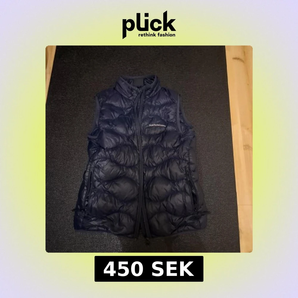 Snygg mörkblå dunväst från Peak Performance med quiltad design och hög krage. Västen har dragkedja framtill och två sidofickor med dragkedja. Perfekt att slänga över en hoodie när det är kyligt ute.
