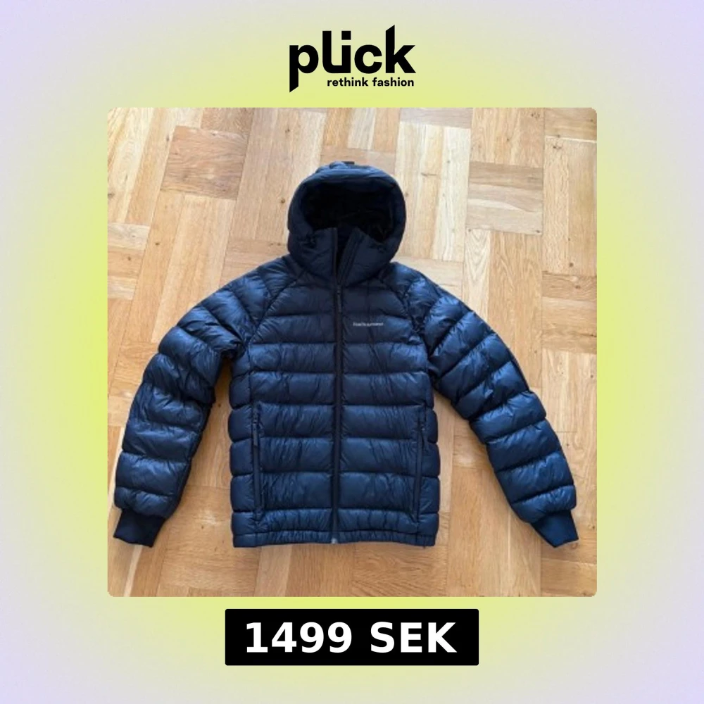 Säljer en svart dunjacka från Peak Performance i storlek S. Jackan har huva, dragkedja framtill och ribbade muddar vid ärmsluten. Den är quiltad och har en klassisk pufferstil som håller dig varm under kalla dagar.