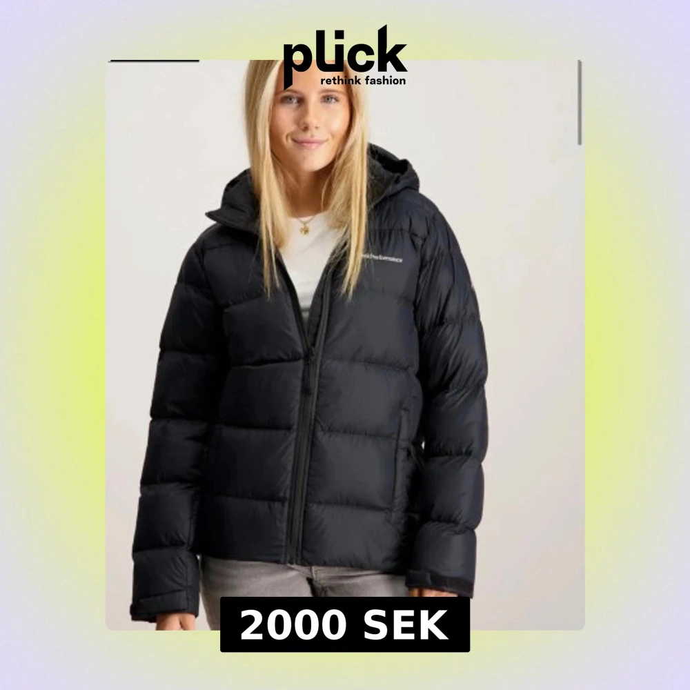 Säljer en svart pufferjacka från Peak Performance med huva och dragkedja framtill. Jackan har en quiltad look och är tillverkad i syntetmaterial. Perfekt för kalla dagar och har en clean, modern vibe. Passformen är normal och jackan är långärmad.