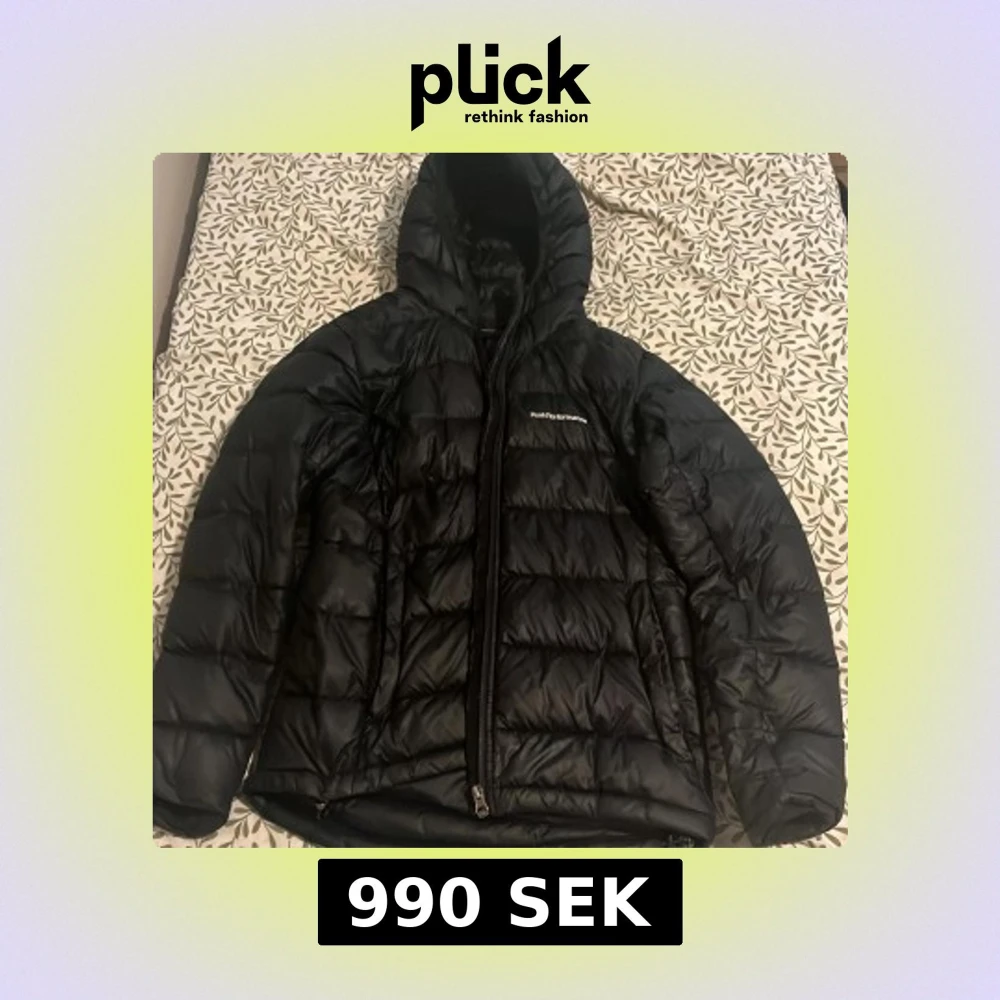 Svart dunjacka från Peak Performance i storlek S. Jackan har quiltad design, huva och dragkedja framtill. Klassisk logga på bröstet och ärmen. Perfekt för kalla dagar och riktigt snygg till streetwear-stilen.