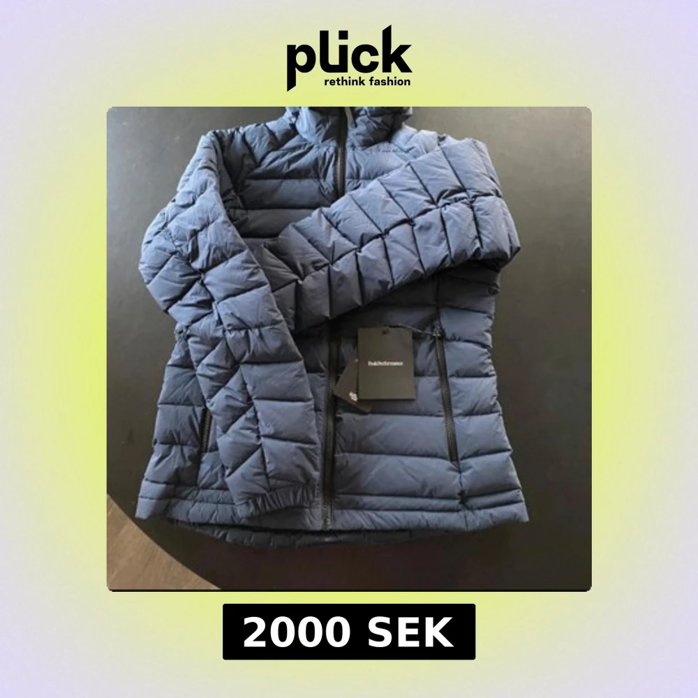 Snygg blå dunjacka från Peak Performance med huva och dragkedja. Perfekt för kyliga dagar med sin quiltade design och praktiska fickor. Ett måste för garderoben!