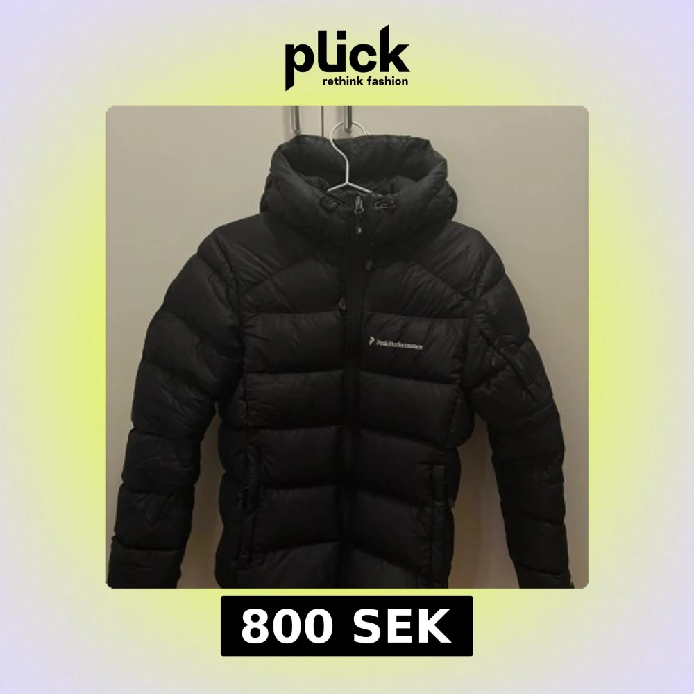 Svart dunjacka från Peak Performance med huva och dragkedja framtill. Jackan har ett puffigt, quiltat utseende och logga på bröstet. Perfekt för kalla dagar med sin tjocka och isolerande design. Snygg och funktionell för dig som gillar stil och värme.