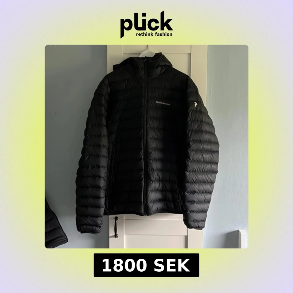 Svart dunjacka från Peak Performance i storlek XL men passar även L. Den är använd ett fåtal gånger på grund av för stor storlek, finns inget slitage på den. Köpte den förra vintern ny för 2800kr