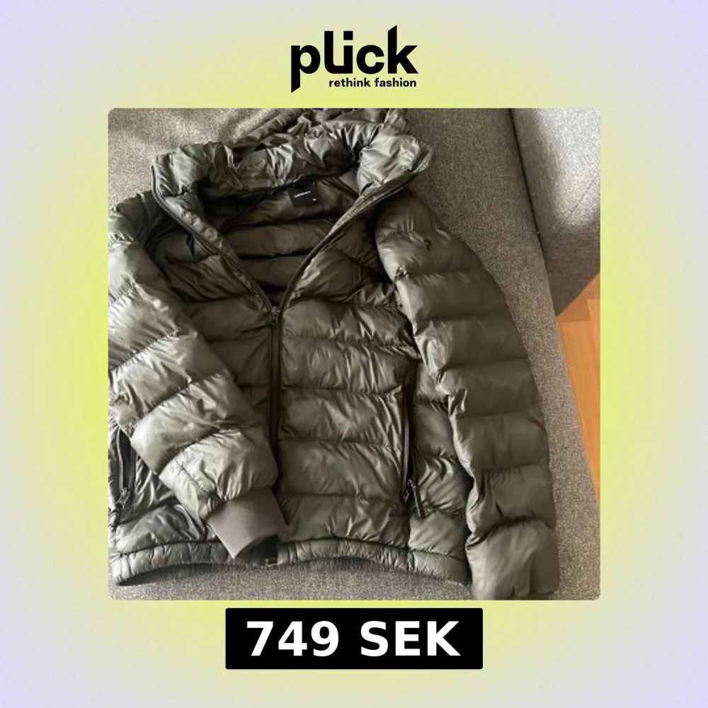 Snygg mörkgrön dunjacka från Peak Performance med huva och dragkedja. Jackan är quiltad och har ribbade muddar vid ärmsluten samt praktiska fickor med dragkedja. Perfekt för kalla dagar när du vill hålla stilen och värmen.