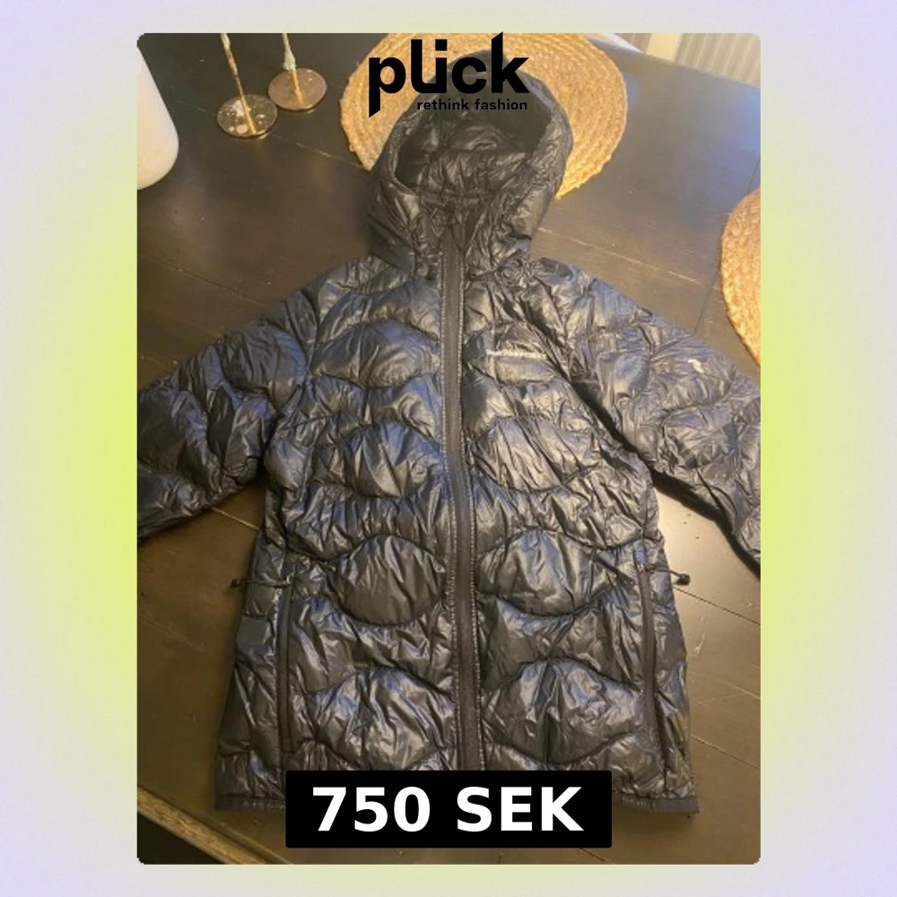 Svart dunjacka från Peak Performance i storlek XS. Jackan har huva, dragkedja framtill och två sidofickor med dragkedja. Har ett litet märke på armen men inget man tänker på. Skriv om ni vill ha fler bilder.