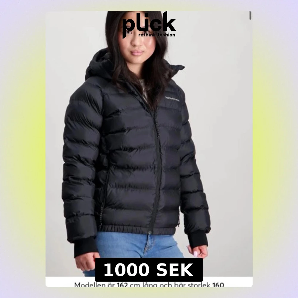 Säljer en svart pufferjacka från Peak Performance med huva och dragkedja framtill. Jackan har en quiltad design, ribbade muddar och logga på bröstet samt ärmen. Perfekt för kalla dagar och riktigt snygg till jeans eller mjukis.