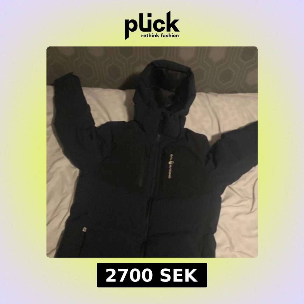 Säljer en mörkblå dunjacka från Peak Performance. Jackan har en hög krage och en justerbar huva för extra skydd mot kyla. Den är utrustad med dragkedja och flera praktiska fickor. Perfekt för kalla vinterdagar.