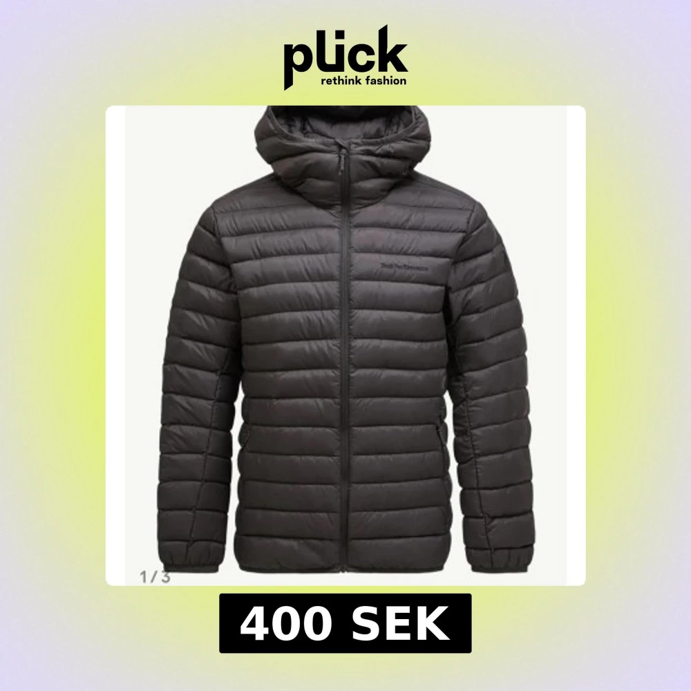 Säljer en stilren svart pufferjacka från Peak Performance. Jackan har en praktisk huva och dragkedja framtill. Perfekt för kyligare dagar. accessoaren till dragkedjan saknas! säljer för 400kr