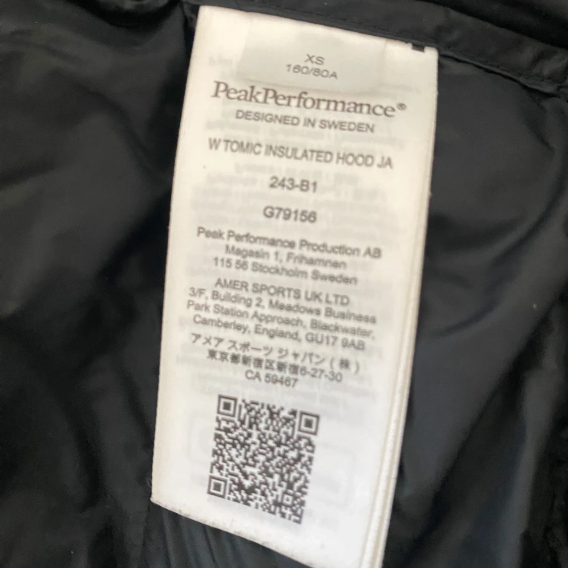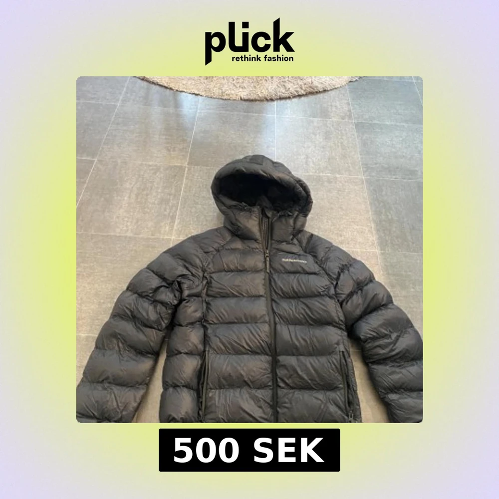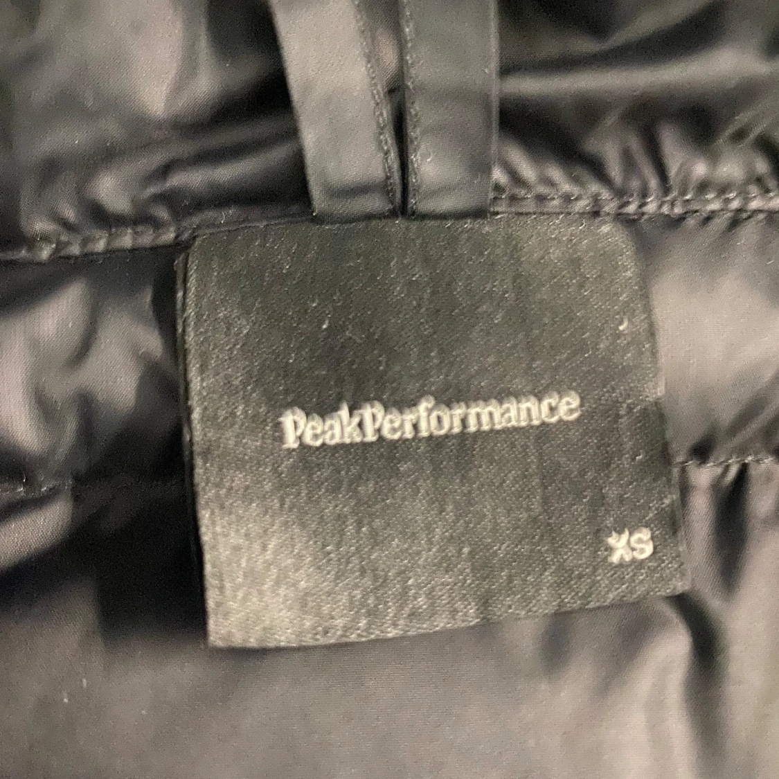 Säljer en svart dunjacka från Peak Performance i storlek XS. Jackan har huva, dragkedja framtill och två sidofickor med dragkedja. Perfekt för kalla dagar och riktigt skön att bära. Klassisk pufferstil med diskret logga på bröstet.