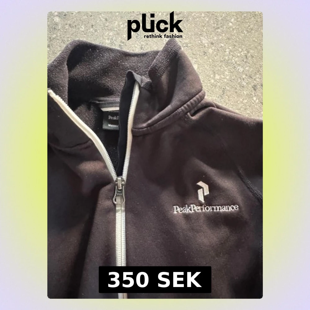 Svart fleecejacka från Peak Performance med vit dragkedja och broderad logga på bröstet. Jackan har hög krage, långa ärmar och två fickor med dragkedja. Perfekt för kyliga dagar och enkel att slänga på sig när du är på språng.