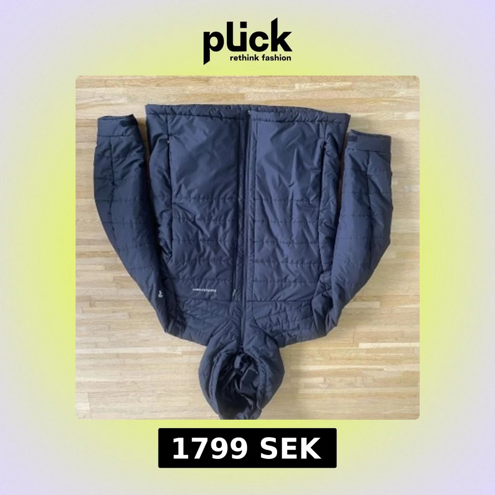 Säljer en svart pufferjacka från Peak Performance med huva och dragkedja framtill. Jackan har quiltad design och är tillverkad i syntetmaterial som håller dig varm under kyliga dagar. Perfekt för dig som gillar stilren och funktionell ytterkläder.