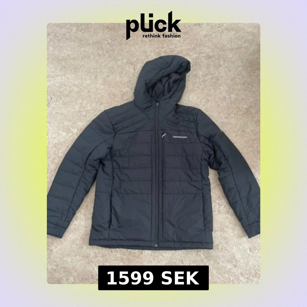 Svart quiltad jacka från Peak Performance med huva och dragkedja framtill. Jackan har en stilren look, diskret logga på bröstet och är tillverkad i syntetmaterial. Perfekt för kyliga dagar och har en sportig vibe.