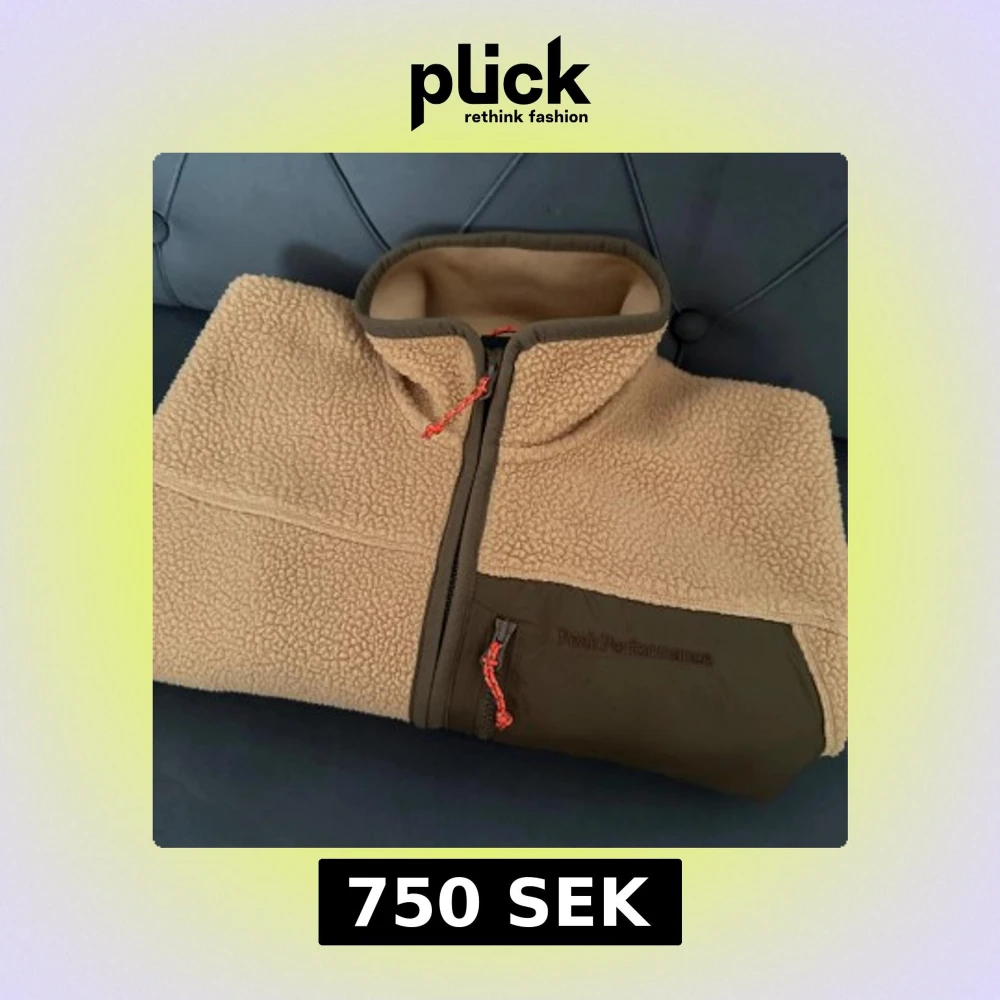 Säljer en beige teddyjacka från Peak Performance i storlek S. Jackan har mjuk fleece, detaljer i mörkgrönt tyg och orange snören på dragkedjorna. Hög krage och flera fickor med dragkedja gör den både snygg och praktisk. Perfekt för kyliga dagar. använd en gång