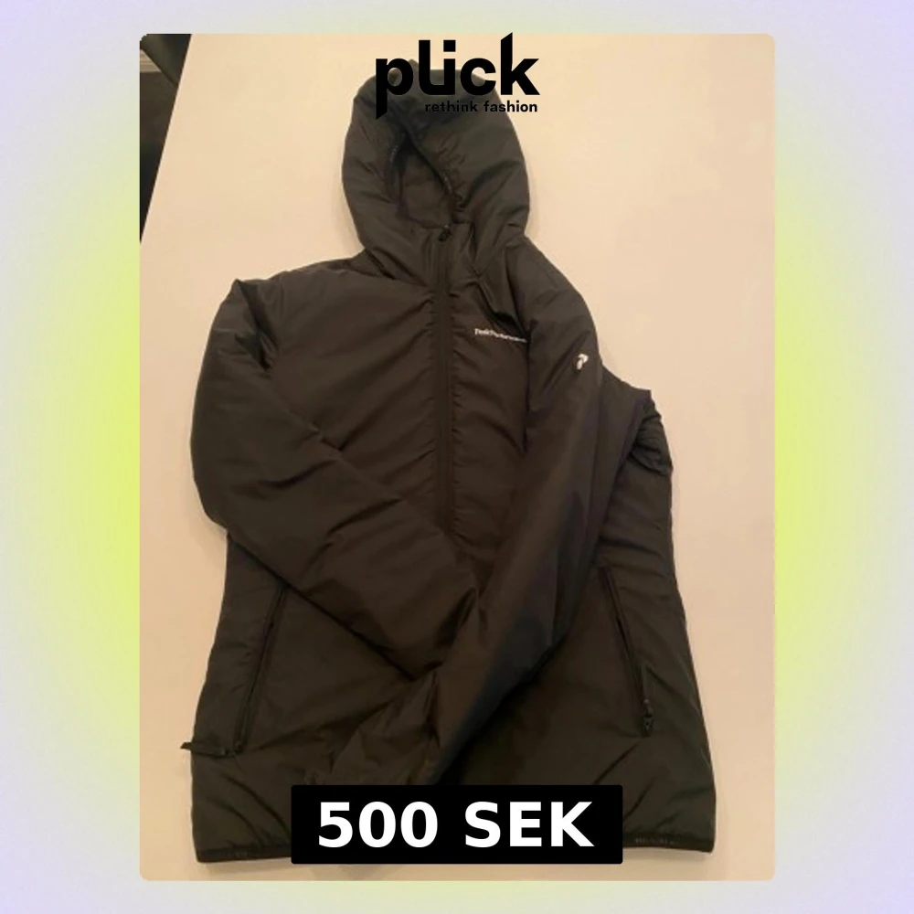 Svart vindjacka från Peak Performance i storlek M. Jackan har huva, två sidofickor med dragkedja och logga på bröstet. Perfekt för kalla dagar med sin quiltade design och stilrena look. Materialet är syntet och jackan har hel dragkedja framtill. Storlek M men skulle mer säga storlek S. Fint skick!