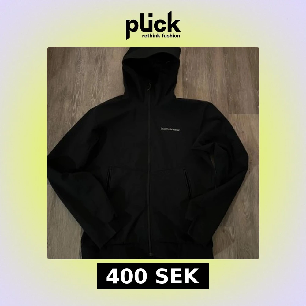Svart peak performance vindjacka i bra skick förutom ett hål som blivit men lagat med en lapp över men syns knappt vid användning (se andra bilden) där av priset!