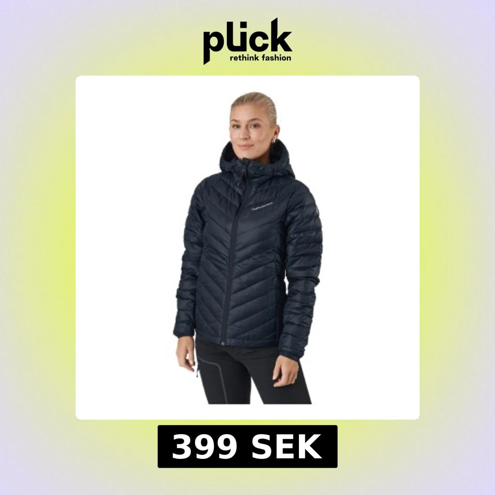 Snygg svart dunjacka från Peak Performance med huva och dragkedja framtill. Jackan har ett quiltat mönster och logotyp på bröstet och ärmen. Kontakta för mer bilder!