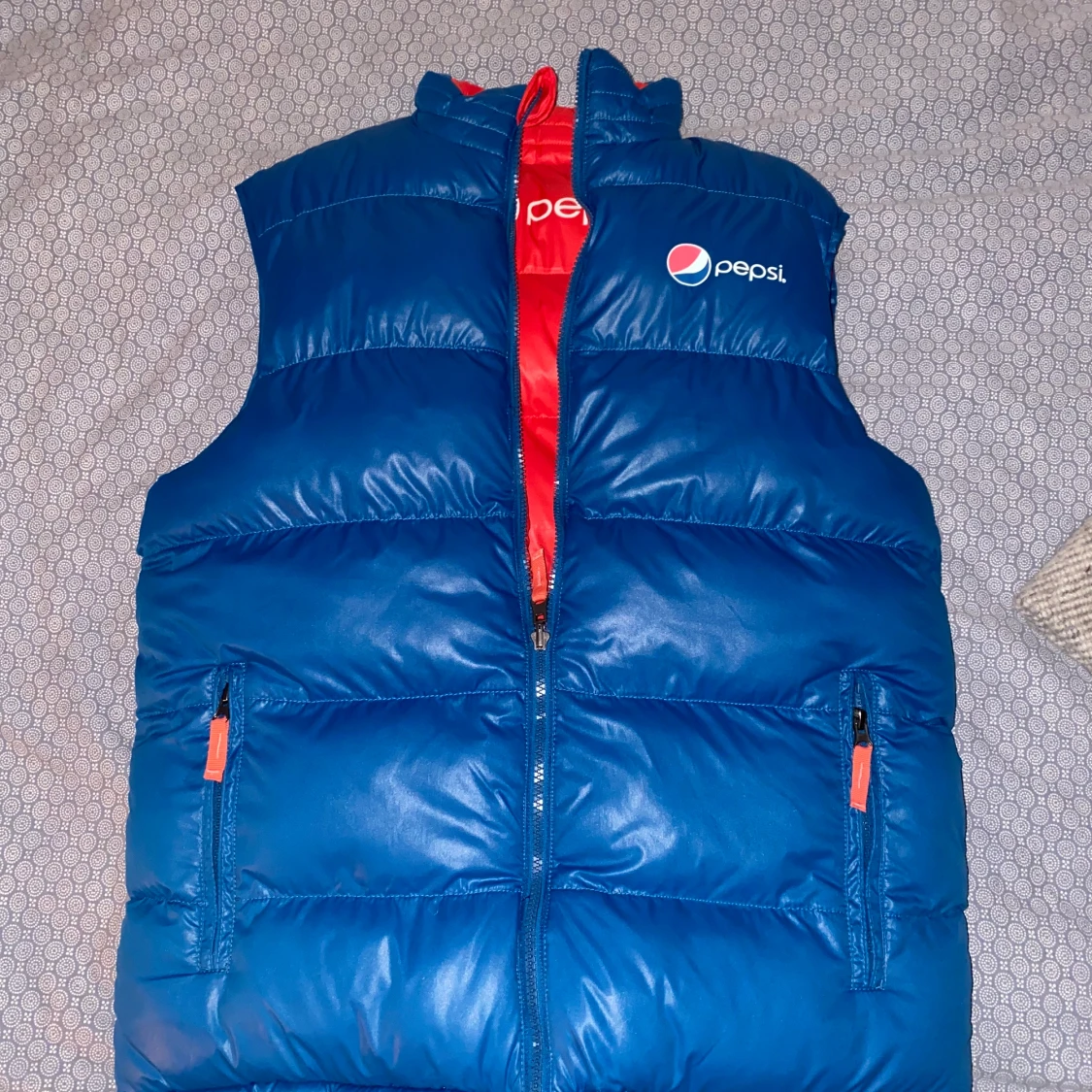 Hej! Säljer en blå retro pepsi vest. Vesten sitter som en M. Kom med pris förslag!