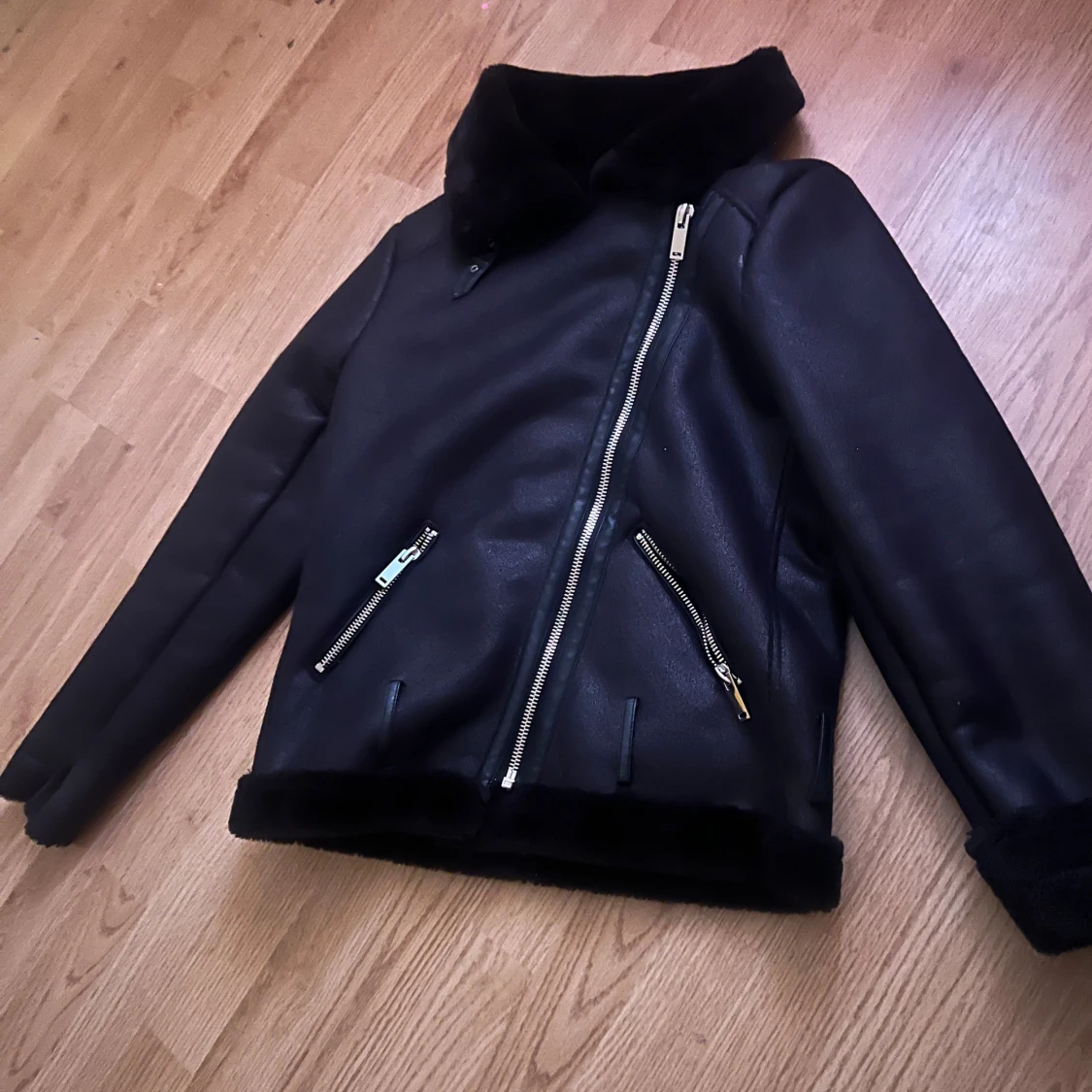 Snygg svart skinnjacka från Bershka med mjukt pälsfoder. Jackan har en asymmetrisk dragkedja och två snedställda fickor med dragkedjor. Perfekt för kyligare dagar med sin stilrena design och varma foder.