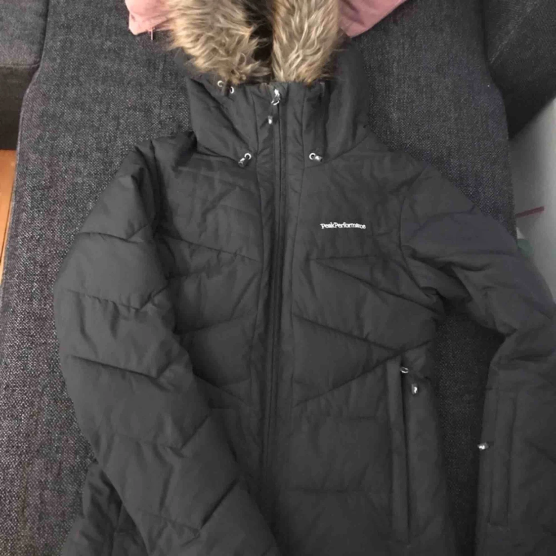 En nästan helt ny peak Peak performance bara använd en vinter. Det är som en skidjacka finns en ficka på armen som man kan ha liftkort osv i. Har även 2st fickor inne. Fickorna har dragkedja. Kan frakta men då står köparen för frakten ca 70kr😊
