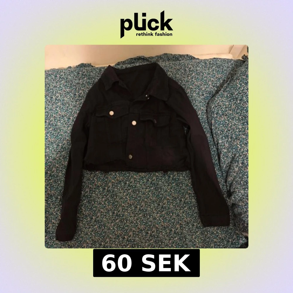 Svart croppad jeansjacka med klassisk krage och silverfärgade knappar framtill. Jackan har två bröstfickor med lock och långa ärmar. Rå kant nedtill för en edgy vibe. Perfekt för dig som gillar streetstyle och vill ha en snygg layering-piece.