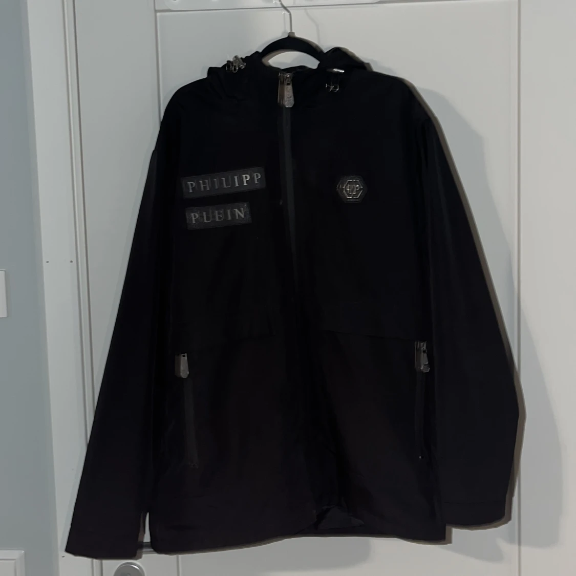 Tja. Säljer denna sjukt exklusiva svarta jackan från Philip Plein🔥jackan är storlek L men passar M/L. nypris:8000kr vårt pris:1499kr😊. Skicket är 8/10. Tveka inte att ställa några frågor🔥💫👌