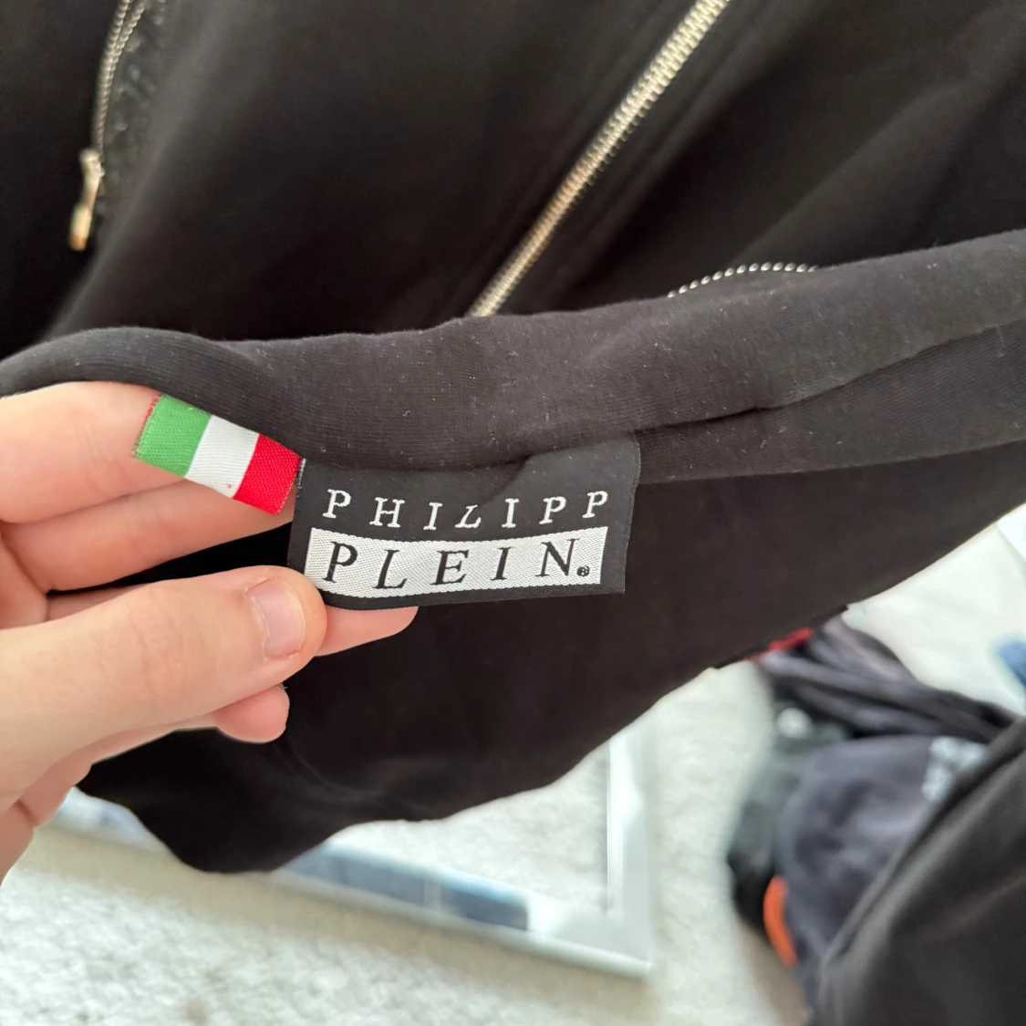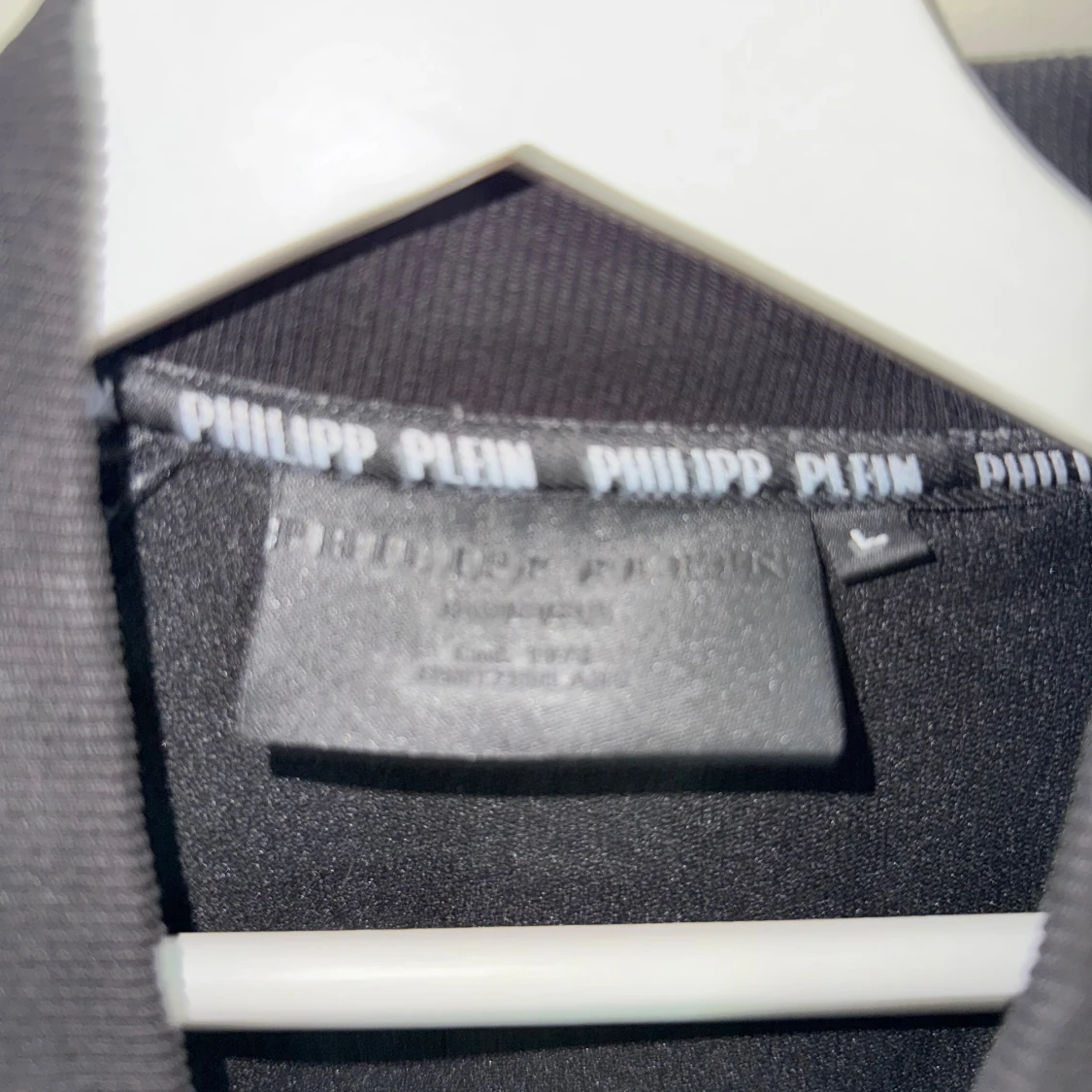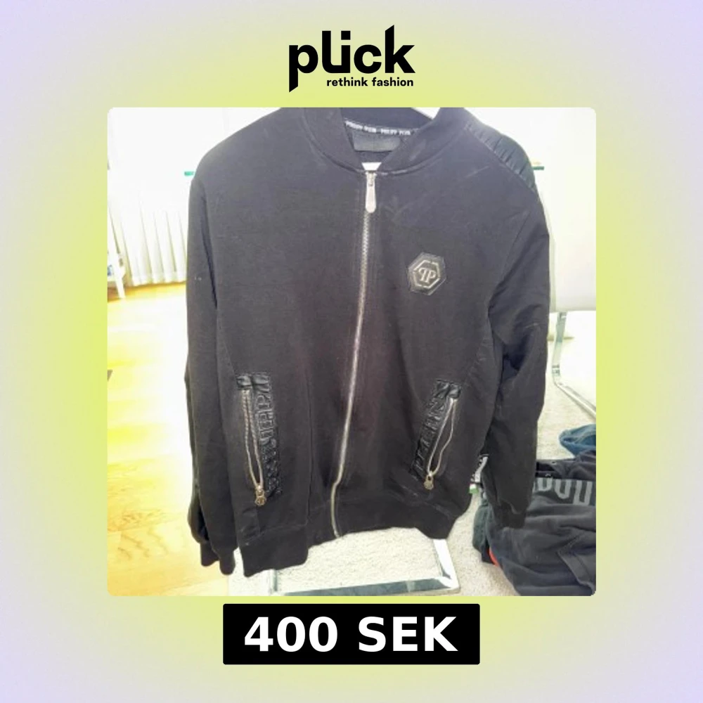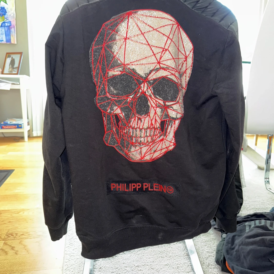 Svart bomberjacka från Philipp Plein med dragkedja, dödskalle på baksidan (några pärlor har lossnat) skick 7/10, inga fläckar eller hål men några pärlor har lossnat. Size L. Om du har fler frågor eller är intresserad, skriv privat