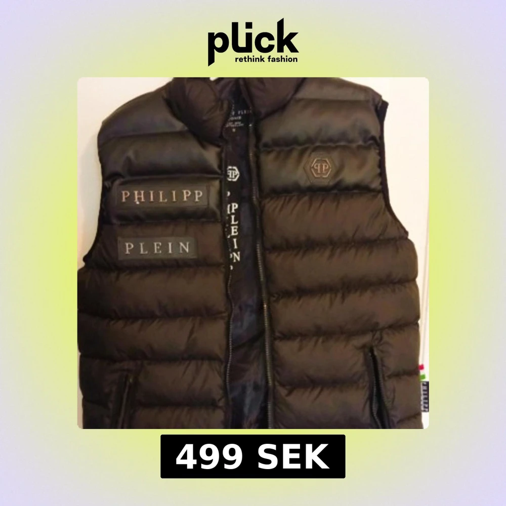Snygg svart dunväst från Philipp Plein med quiltad design och logotyp på bröstet. Västen har dragkedja framtill, två fickor med dragkedja och tydliga logodetaljer. Perfekt för lager-på-lager och streetstyle.