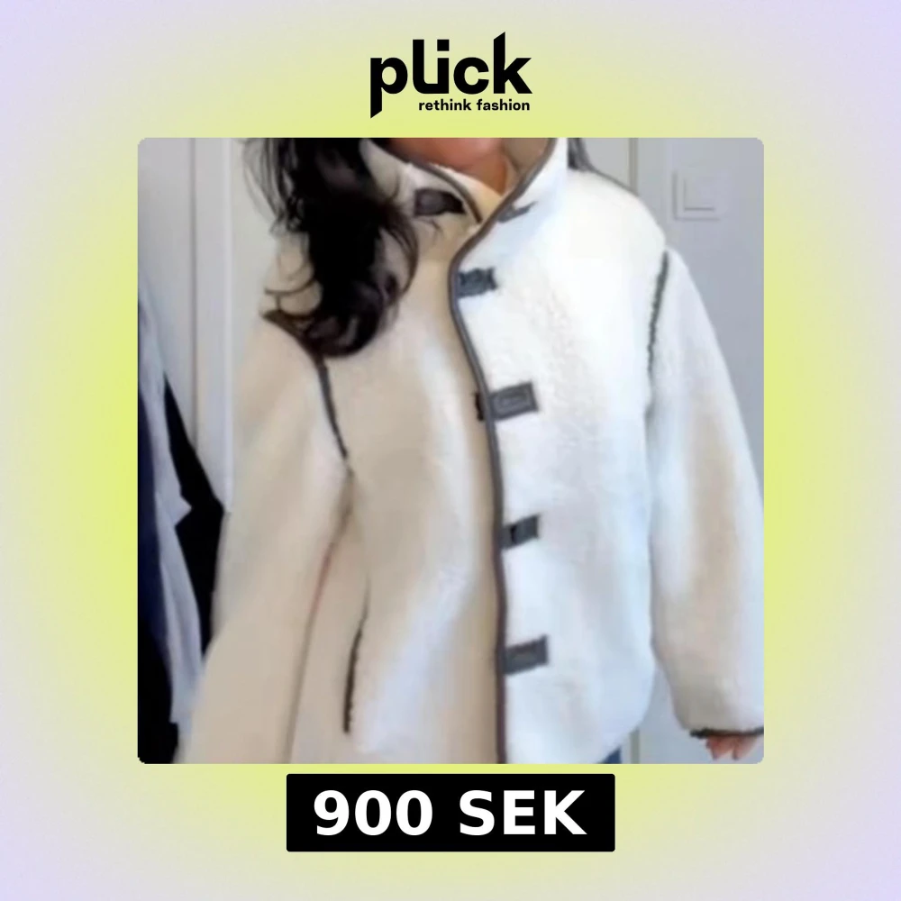 Säljer en supermysig vit teddyjacka med svarta detaljer och snygga knäppningar framtill. Jackan har hög krage, markerade svarta sömmar och är perfekt för kyliga dagar. De första bilderna är lånade.