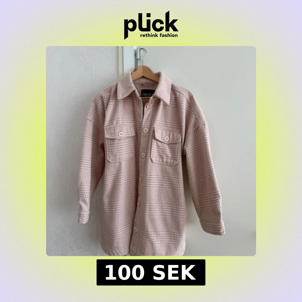Superfin rutig overshirt i ljusrosa toner från Pieces. Jackan har knappar framtill, två stora bröstfickor och ett bälte i midjan..