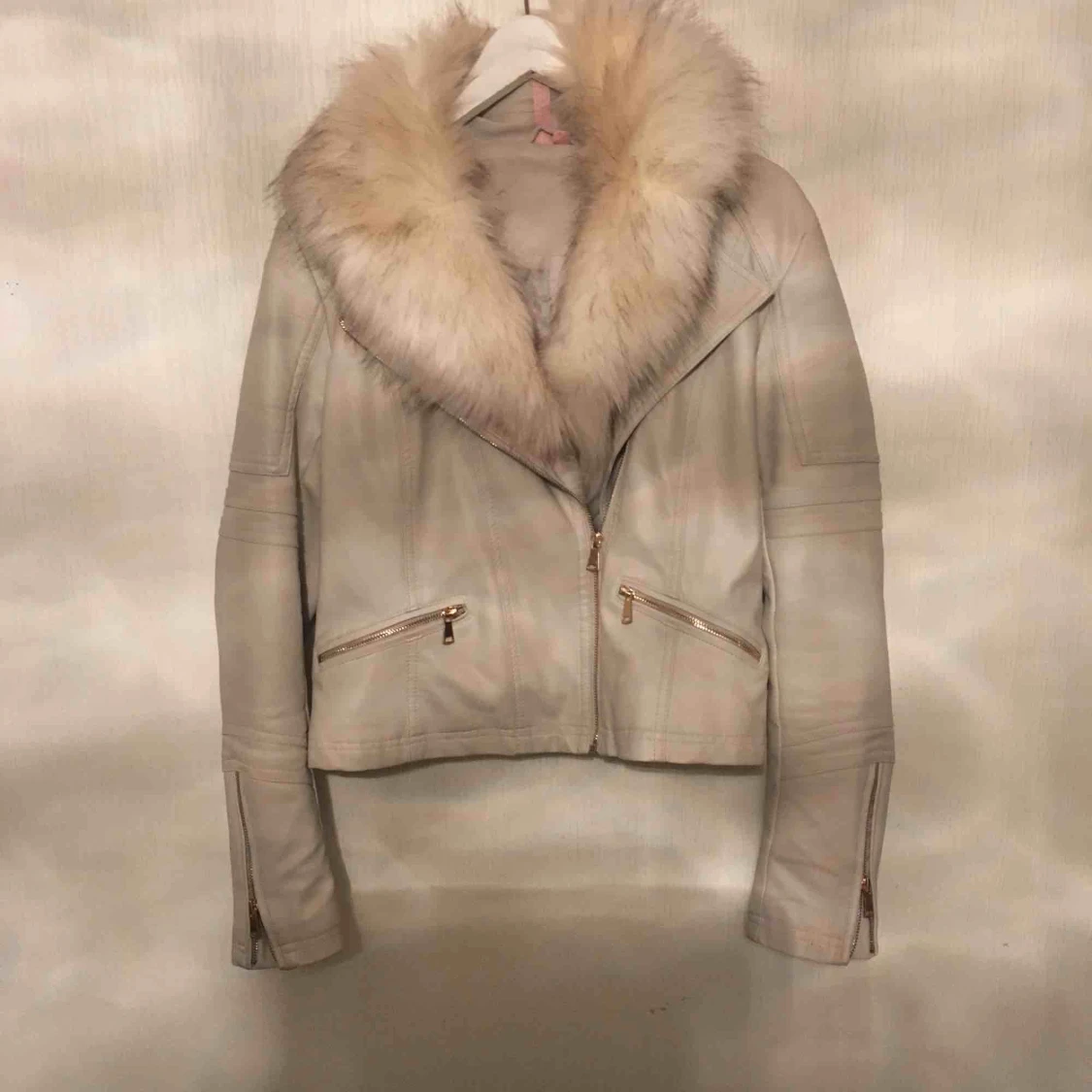 En fake skinnjacka med pälskrage i storlek L. I utmärkt skick