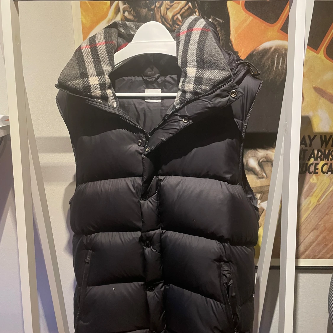 Säljer en snygg svart pufferjacka från Burberry med klassiskt rutigt foder i huvan. Jackan har dragkedja och knappar framtill samt en broderad logga på ärmen. Perfekt för kyliga dagar, och även inför våren då man kan ta av armarna och göra till väst. Kvitto finns! Hör av er vid fler frågor💛🤗