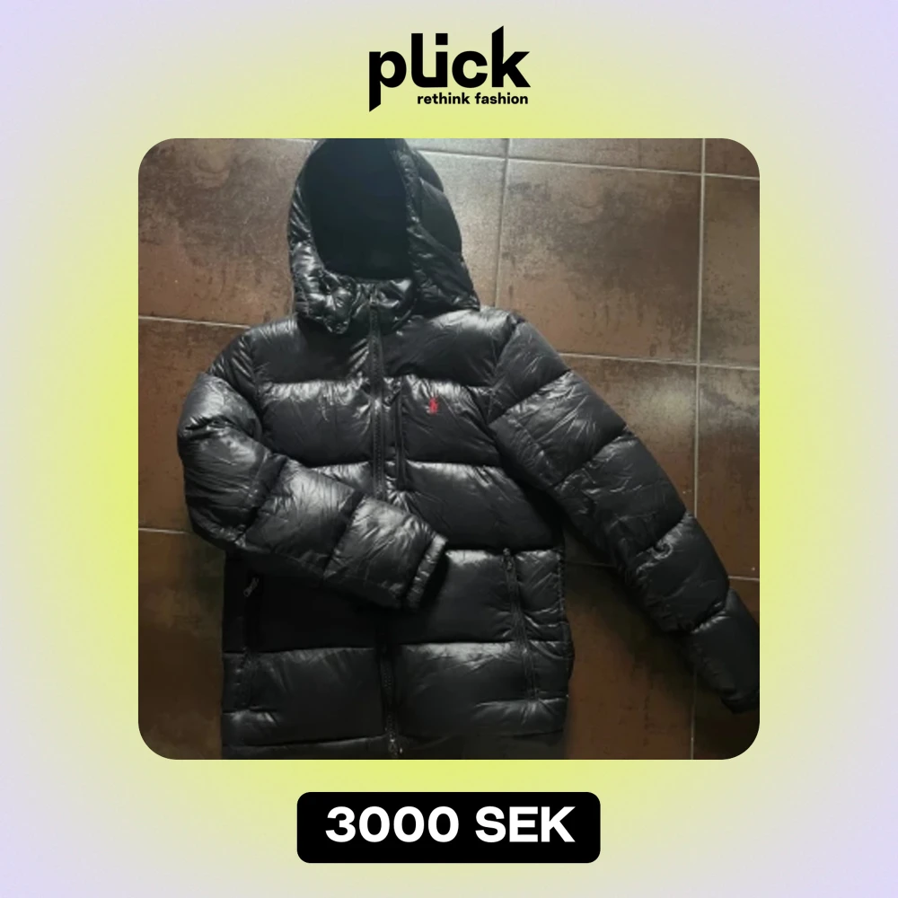 Super fin Ralph Lauren jacka i svart blankt material. Fint skick!