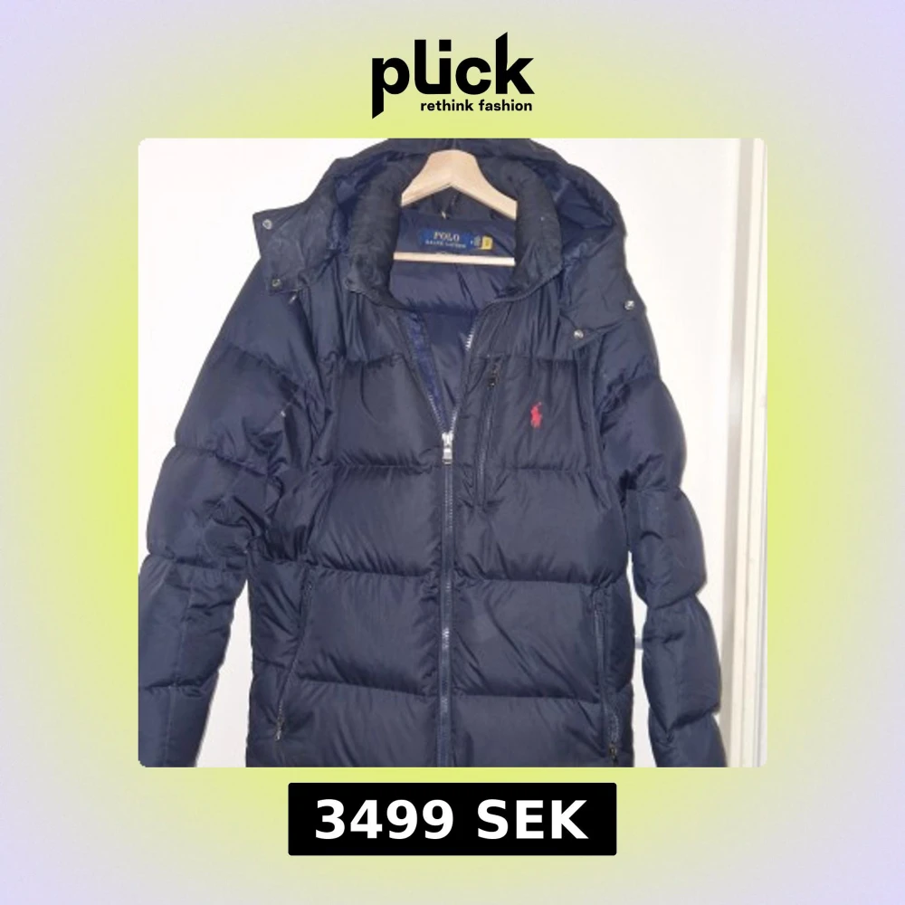 Mörkblå dunjacka från Polo Ralph Lauren med huva och dragkedja framtill. Jackan har broderad röd logga på bröstet, flera fickor med dragkedja och klassisk pufferstil. Perfekt för kalla dagar och riktigt snygg streetstil.