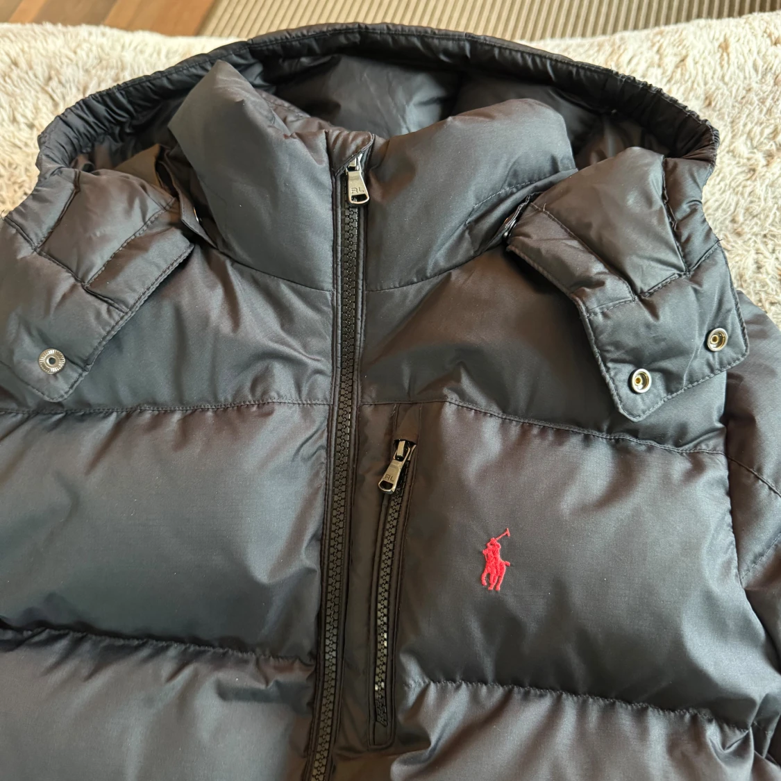 Svart pufferjacka från Polo Ralph Lauren med röd broderad logga på bröstet. Jackan har huva, dragkedja framtill och två dragkedjeförsedda fickor. Tillverkad i polyester och perfekt för kalla dagar. Klassisk och stilren design med snygga detaljer.använt max 3 gånger så nästan helt ny, ny pris 3500-3700