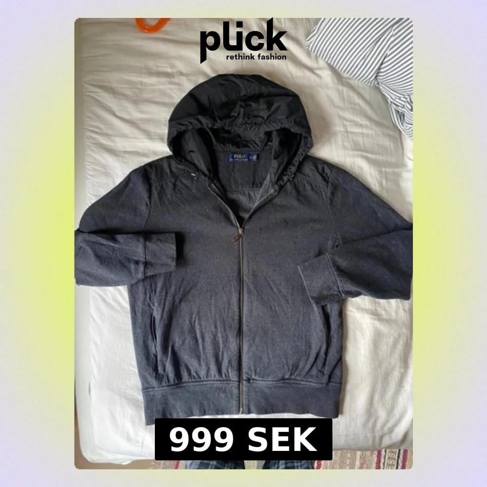 Grå cardigan från Polo Ralph Lauren med huva och snörning. Jackan har dragkedja framtill och på fickorna, samt detaljer i syntetmaterial på axlar och huva. Stilren design med diskret logga på bröstet. Perfekt för dig som gillar sportig och clean look. Skicket är väldigt bra, utan defekter. Kontakta mig om frågor! 😊