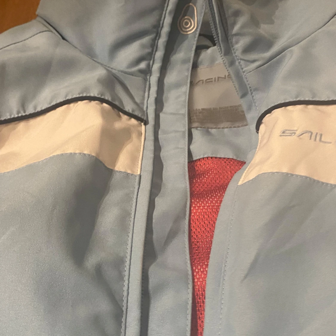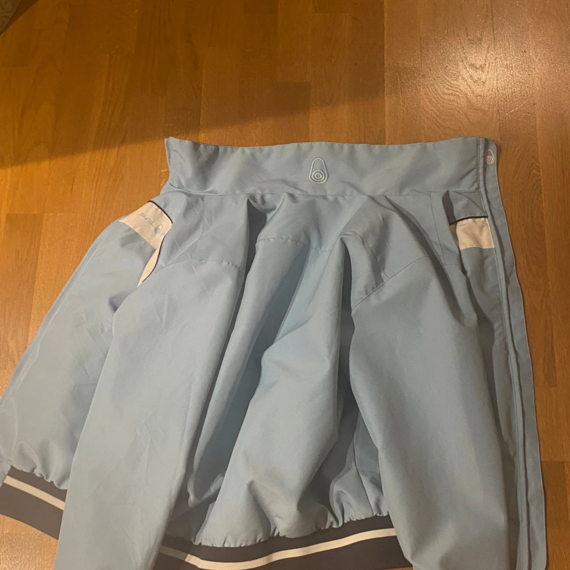 En baby blå höst jacka perfekt för denna väder storlek m funkar för både kvinnor och män anledning till att jag säljer den har för mycket av jackar alltså inga problem med varan,funkar både som en jacka och kofta