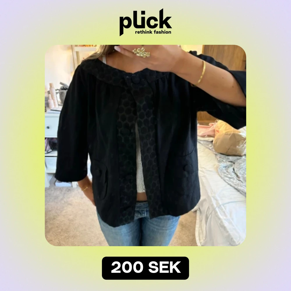 Så snygg jacka/kofta med trekvartsärmar och glitter! Ingen storlek står men skulle säga s/m
