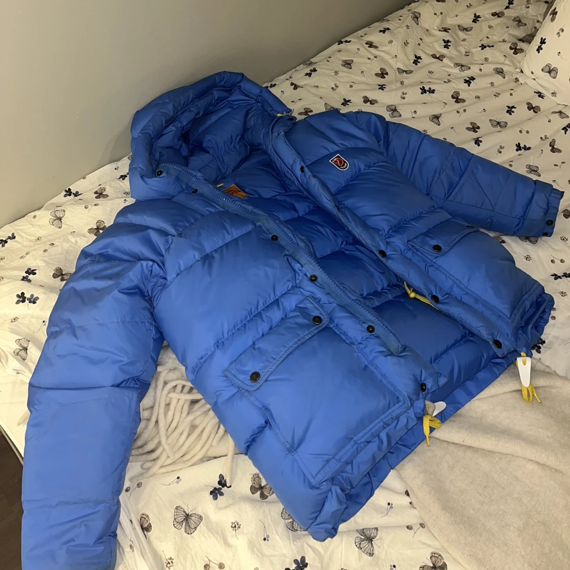 Populär och supervarm dunjacka från fjällräven i bra skick, inga hål. Storlek xxxs, dock jättestor i storlek så skulle säga att den passar upp till S beroende på hur man vill att den ska sitta💕som referens är jag 160, frakten är spårbar och kostar 109💕