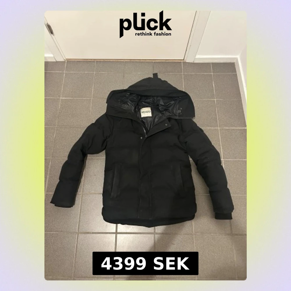 Svart pufferjacka från Kenzo med huva och quiltad design. Jackan har Kenzo-logga på ärmen, två stora fickor fram och dragkedja med knappslå. Perfekt för kalla dagar och har en clean, modern look. Säljs inte längre så svår att få tag på.